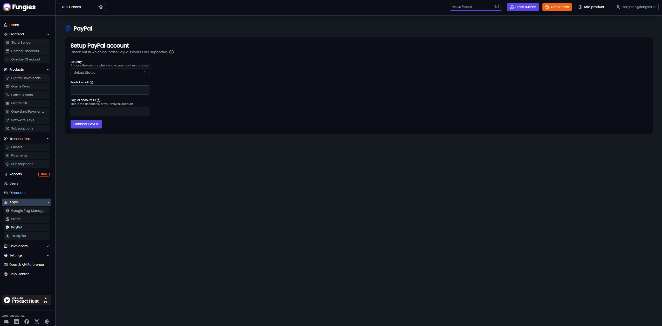 <figure><img src="https://3798839229-files.gitbook.io/~/files/v0/b/gitbook-x-prod.appspot.com/o/spaces%2FtTjX1Zr5bWzjMleIZro2%2Fuploads%2FBX5HlBNRv8xh7kVnWn6v%2Fimage.png?alt=media&#x26;token=0d752f90-fce3-4df6-9dac-707569b73e9d" alt=""><figcaption><p>Fill in your PayPal e-mail along with Merchant ID to get PayPal payouts.</p></figcaption></figure>